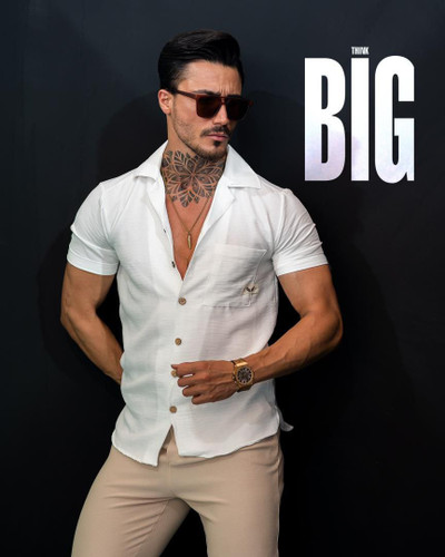 پیراهن کتان مردانه آستین کوتاه دوجیب- پارچه کتان ترک اورجینال (تولید شرکت L CON)