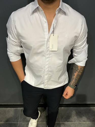 پیراهن مردانه آستین بلند تک رنگ سفید