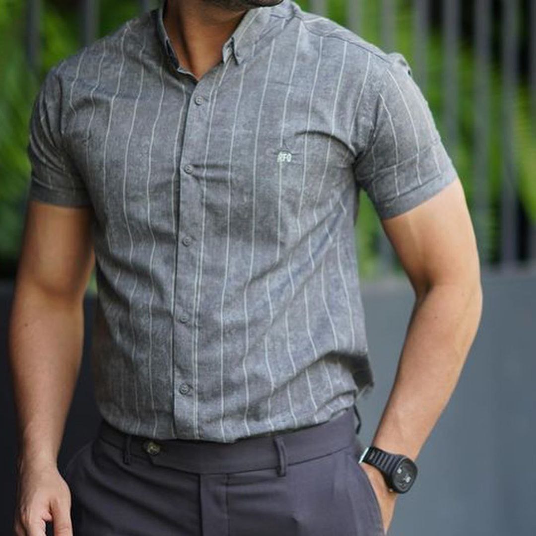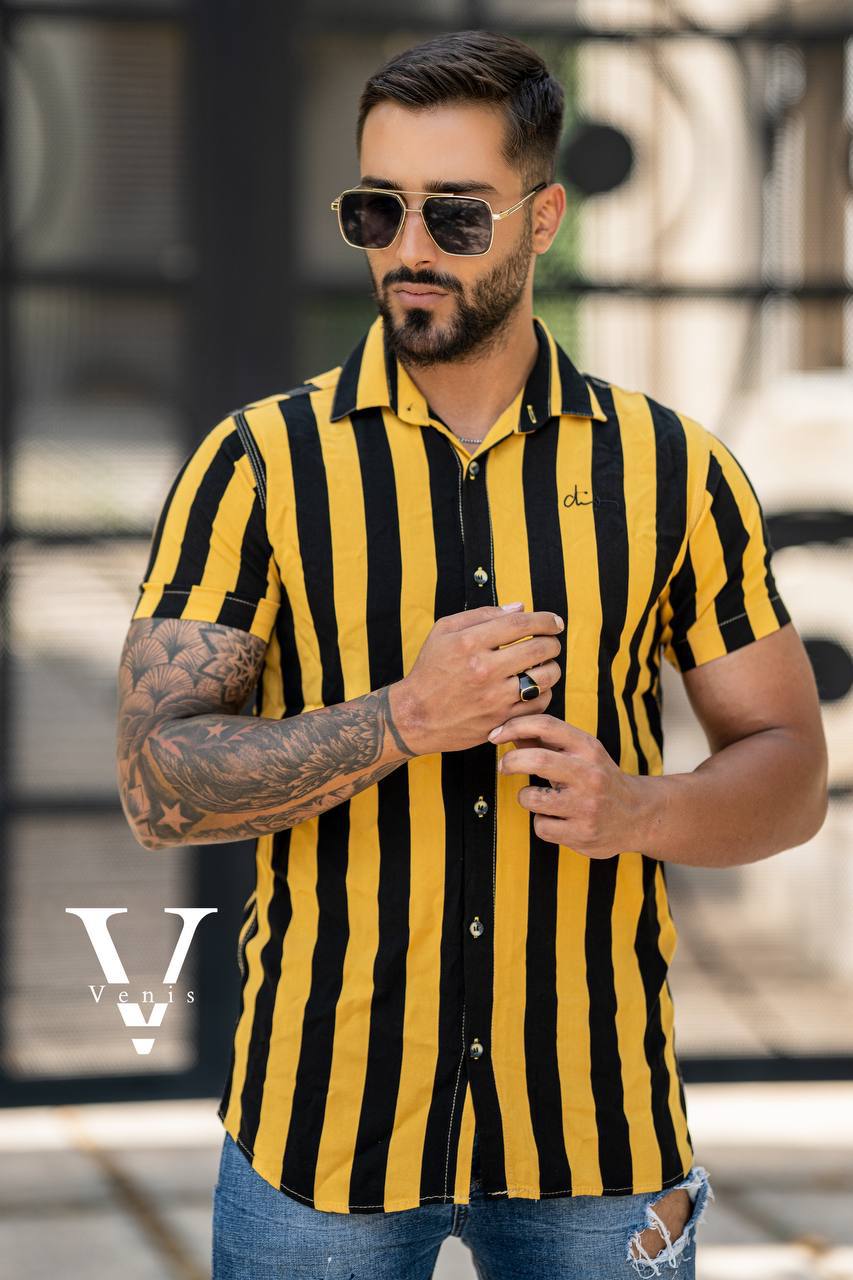 پیراهن مردانه خنک تابستانی با استفاده از پارچه‌های سبک مانند کتان و لینن طراحی شده تا در روزهای گرم، حس راحتی و خنکی به شما بدهد. این مدل‌ها معمولاً آستین کوتاه یا رول‌آپ هستند و رنگ‌های روشن و جذابی دارند. خرید پیراهن مردانه خنک تابستانی به شما کمک می‌کند استایل تابستانی خود را با لباسی سبک و مدرن تکمیل کنید. انتخاب درست پارچه و طراحی، کیفیت و دوام لباس را تضمین می‌کند. 34. پیراهن مردانه خط دار جدید