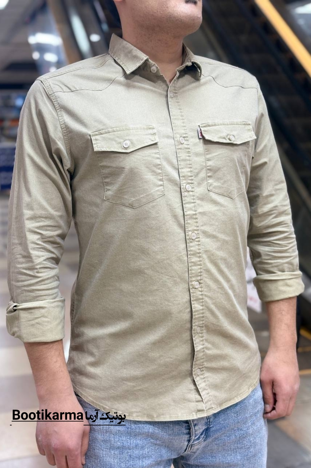 پیراهن لی مردانه آستین بلند دو جیب پارچه ترک رنگ‌بندی کامل