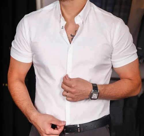 پیراهن مردانه تک رنگ آستین کوتاه سفید رنگ