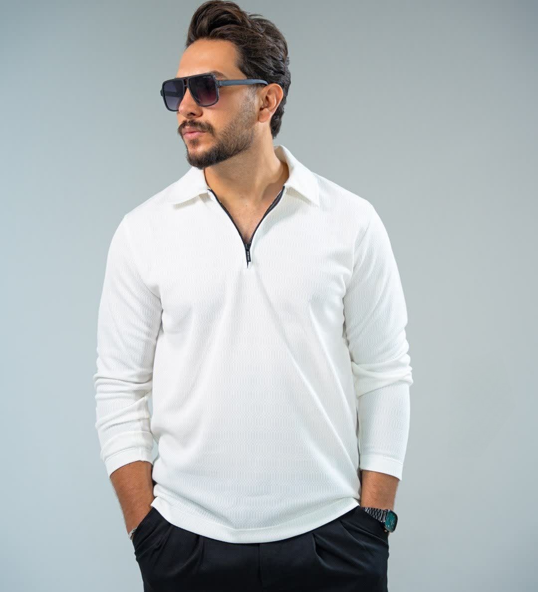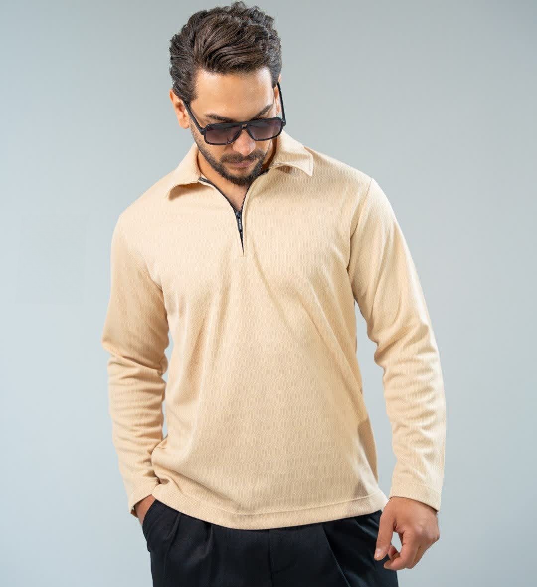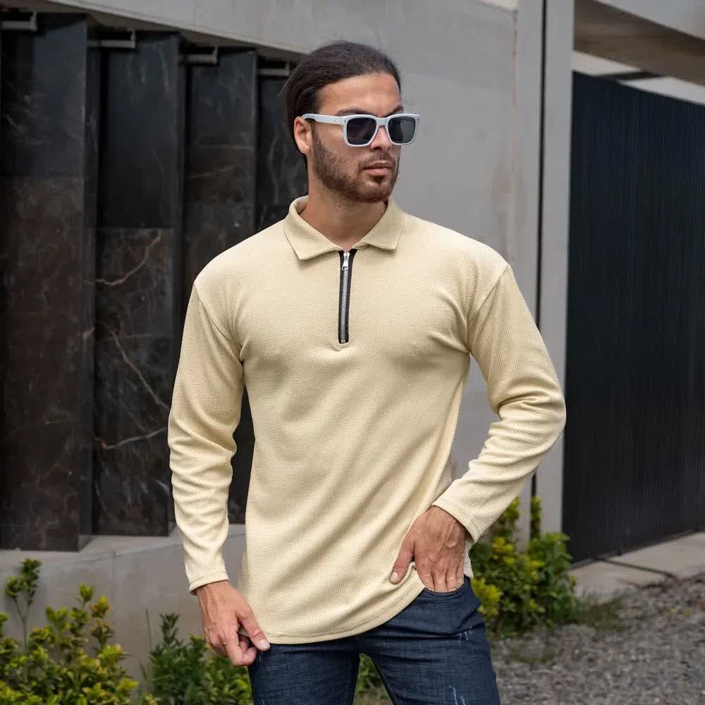 تیشرت نیم زیپ نیم یقه مراکشی مردانه اورجینال استایل اولد مانی old money -ارجینالناموجود