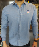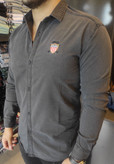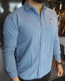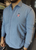 پیراهن لی آستین بلند مردانه بدون جیب ترک آبی و ذغالی