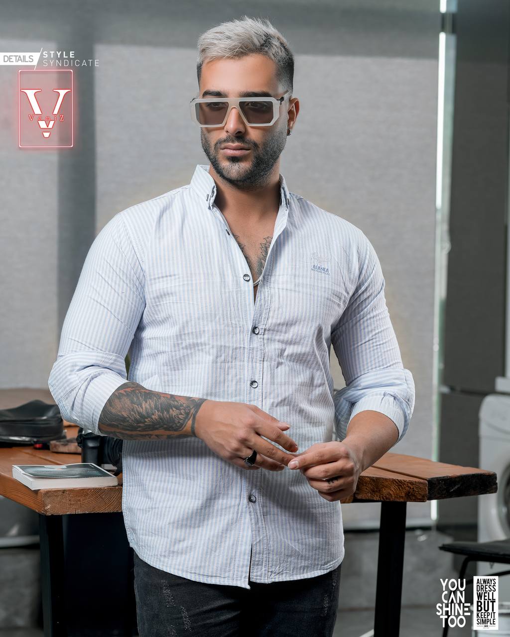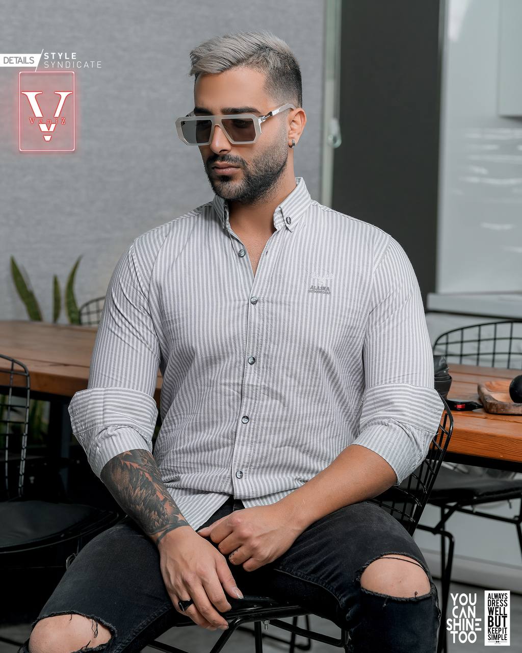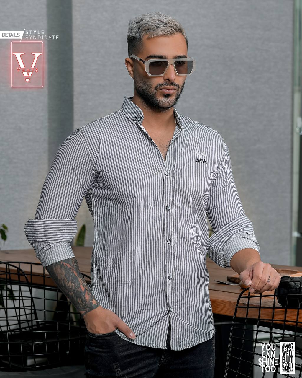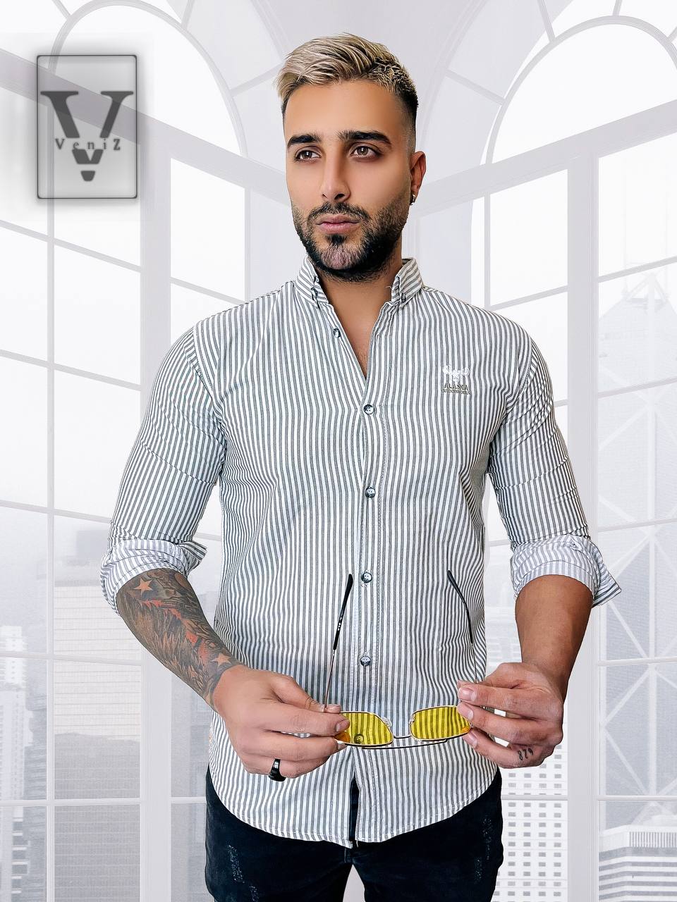 پیراهن راه راه ریز مردانه آستین بلند تمام نخ مدل اندامی