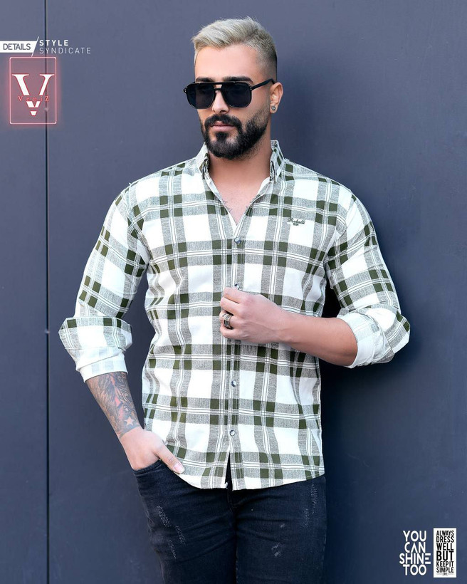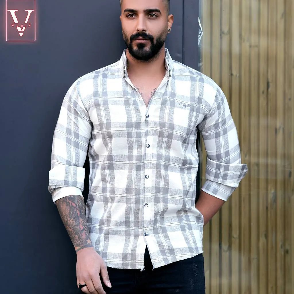 پیراهن چهارخانه مردانه مدل آستین بلند تمام نخ و اندامی