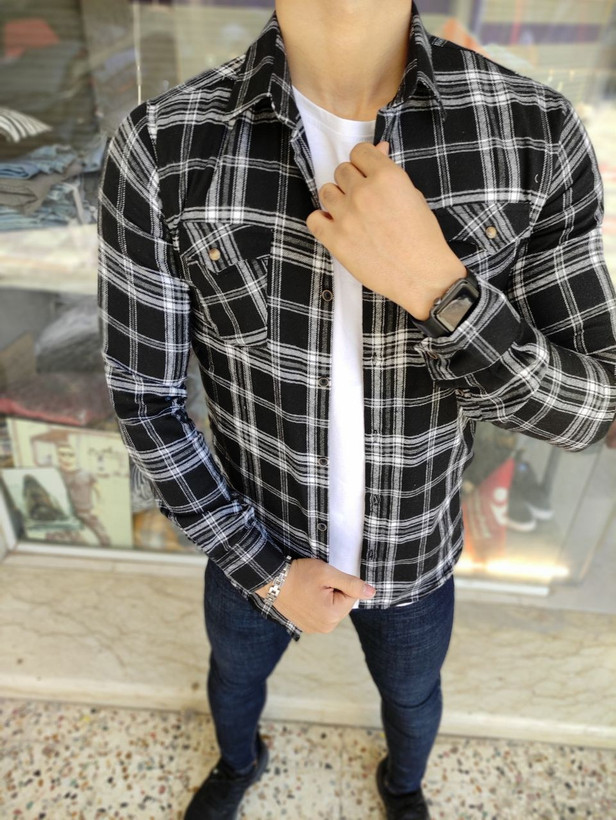 پیراهن پشمی مردانه اورجینال POLO پولو چهارخانه دو جیب