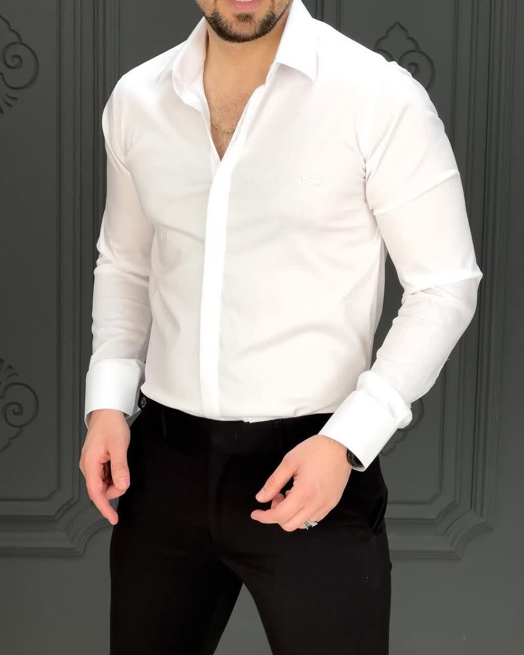 رنگبندی جذاب پیراهن آستین بلند تک رنگ مردانه ارجینال