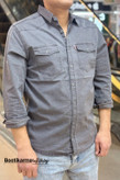 پیراهن کتان مردانه آستین بلند ساده دو جیب کرمی سبز دودی ذغالی اورجینال ترک