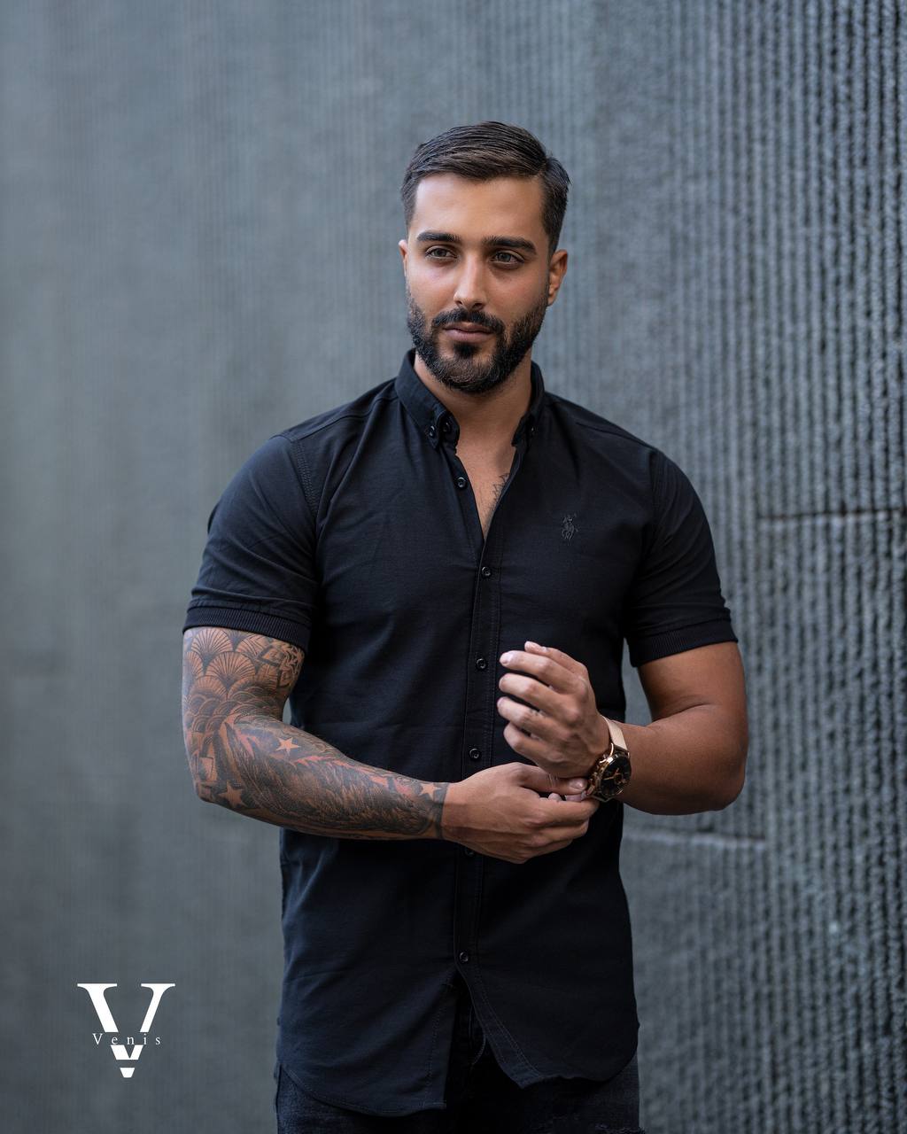 میتوانید پیراهن آستین کوتاه تک رنگ مردانه را با ساعت مچی، کمربند یا عینک آفتابی زیبا همراه کنید تا تیپ شما کامل و چشمگیر شود.