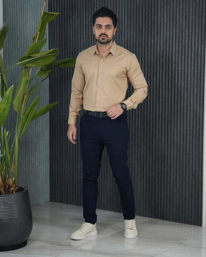 پیراهن آستین بلند تک رنگ مردانه ارجینال