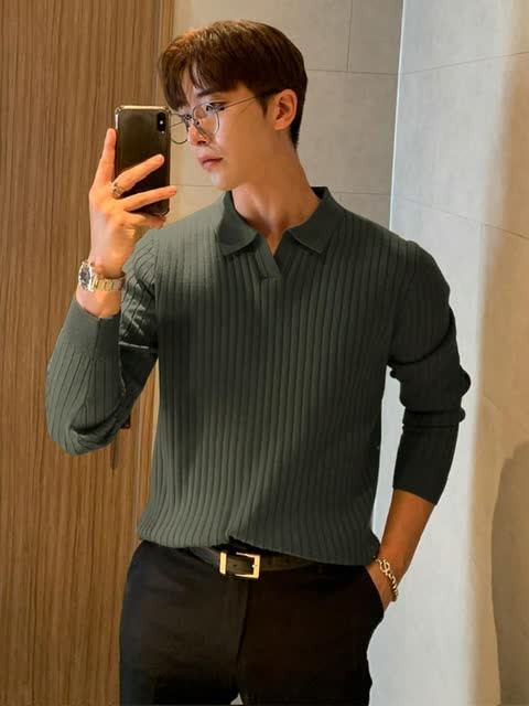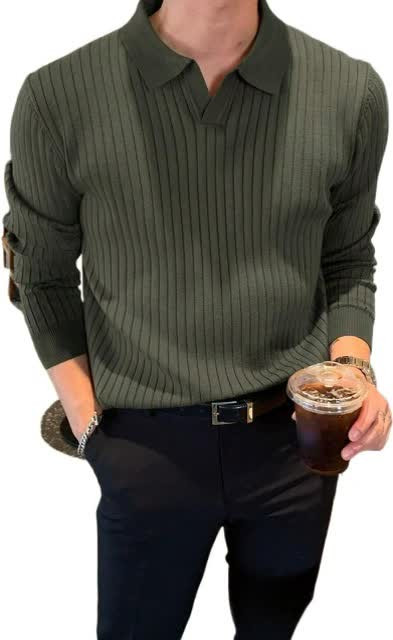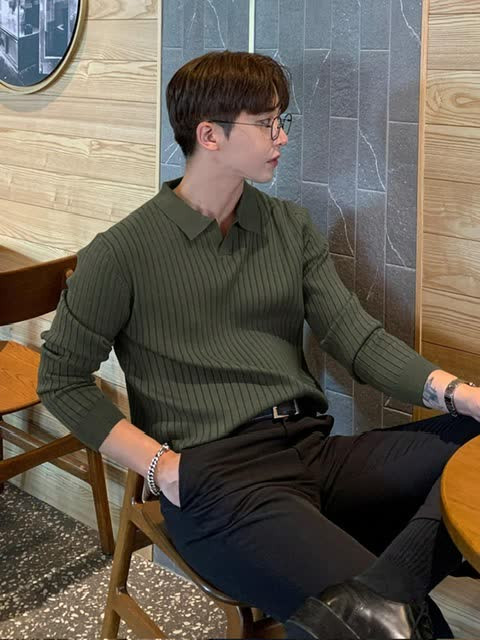 بلوز نیم یقه مراکشی مردانه اورجینال استایل اولد مانی old money -ارجینال (یشمی رنگ)