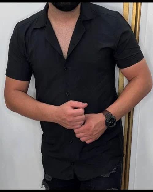 رنگ مشکی جذاب و خاص پیراهن نخی آستین کوتاه مردانه