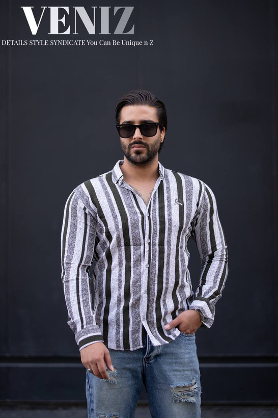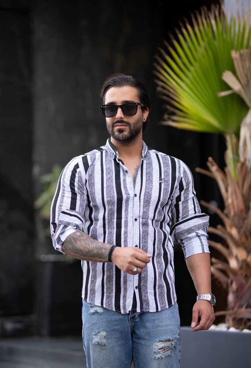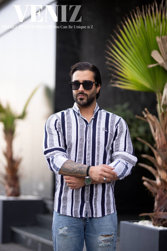 الگوی راه راه روی پیراهن، طرحی کلاسیک و همیشگی است که هرگز از مد نمیافتد و با هر سبک پوششی به راحتی هماهنگ میشود.