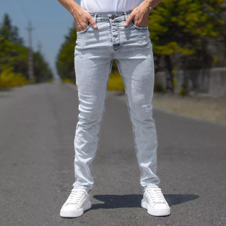 شلوار جین آبی روشن مردانه مدل راسته - اورجینال (ترک) با تنخوری عالی، رنگ ثابت -دوخت شرکت L CON