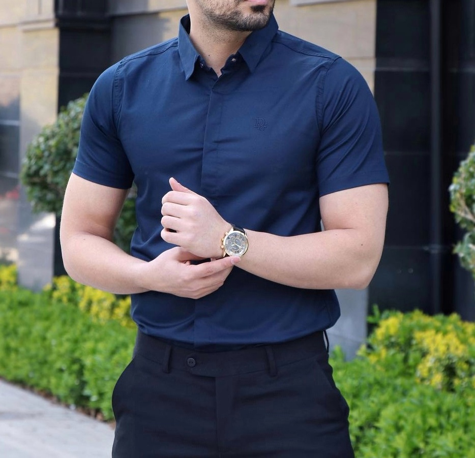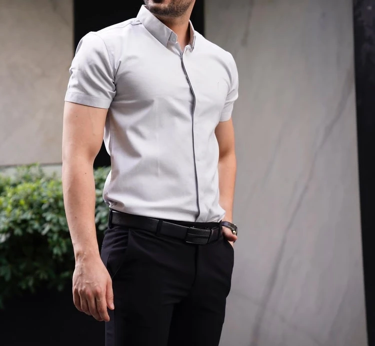 استایلهای پیشنهادی با پیراهن آستین کوتاه مردانه تک رنگ با تنخوری و کیفیتی بسیار عالی