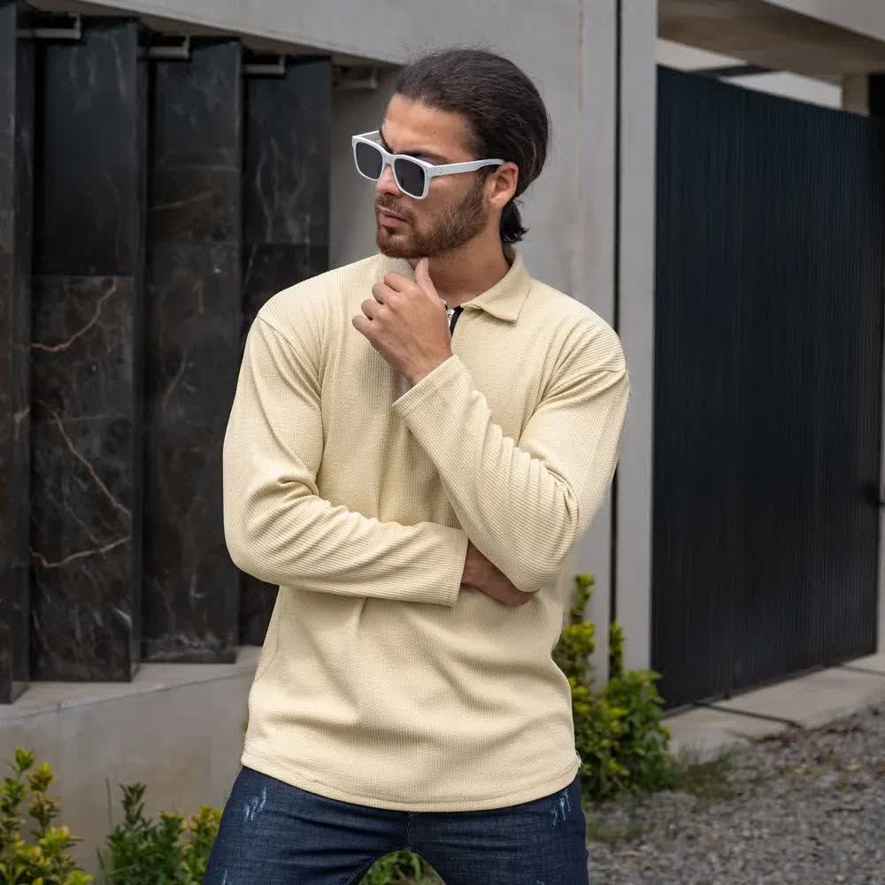 تیشرت نیم زیپ نیم یقه مراکشی مردانه اورجینال استایل اولد مانی old money یکی از خاصترین و شیکترین انتخابها برای آقایانی است که به دنبال استایلی منحصربهفرد و متفاوت هستند.