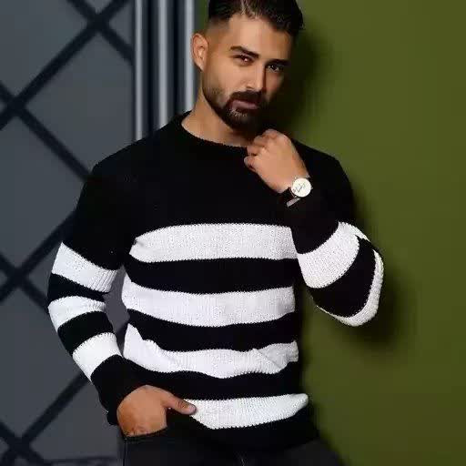 رنگ مشکی با خطوط سفید باعث میشود بافت شما هم کلاسیک باشد و هم استایل خاص داشته باشد. این ترکیب بهراحتی با شلوارهای جین تیره، شلوار کتان یا حتی شلوار رسمی ست میشود.