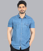 پیراهن لی پارچه ترک ذغالی و آبی روشن | استایل خاص مردانه از بوتیک ارما