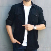 پیراهن کبریتی مشکی دو جیب یک انتخاب بینقص برای آقایانی است که به دنبال استایلی شیک، ساده، مقاوم و مدرن هستند.