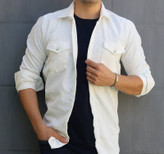 پیراهن کبریتی مردانه دو جیب در رنگ سفید به دلیل خنثی بودن رنگ، قدرت ستپذیری فوقالعادهای دارد.