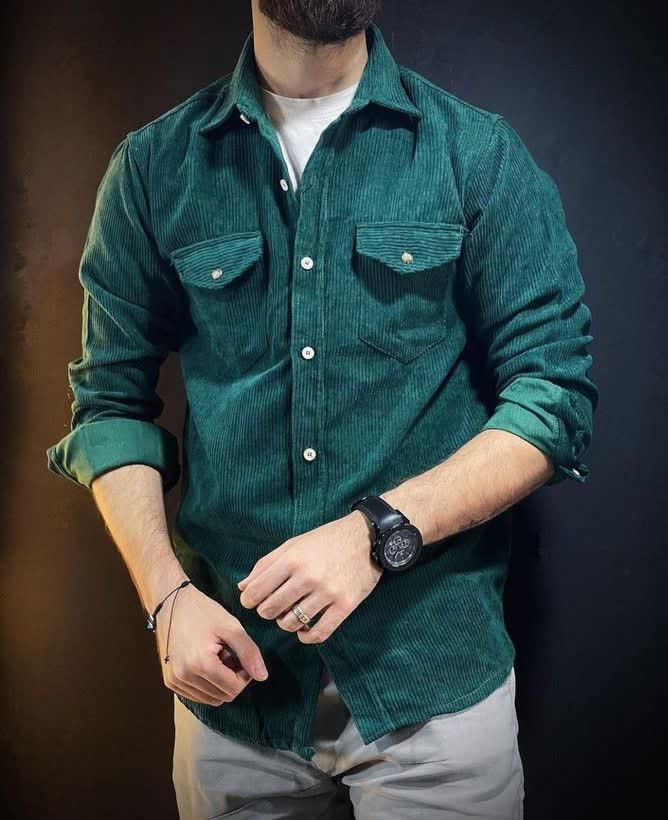 پیراهن کبریتی سبز کلهغازی دو جیب ترکیبی از رنگ ترند سال اروپا، کیفیت بالا، تنخور عالی و طراحی کاربردی است. بافت نرم و مقاوم کبریتی، همراه رنگ سبز اشرافی و دو جیب جذاب، این پیراهن را به یکی از بهترین انتخابها برای فصلهای سرد تبدیل کرده است.