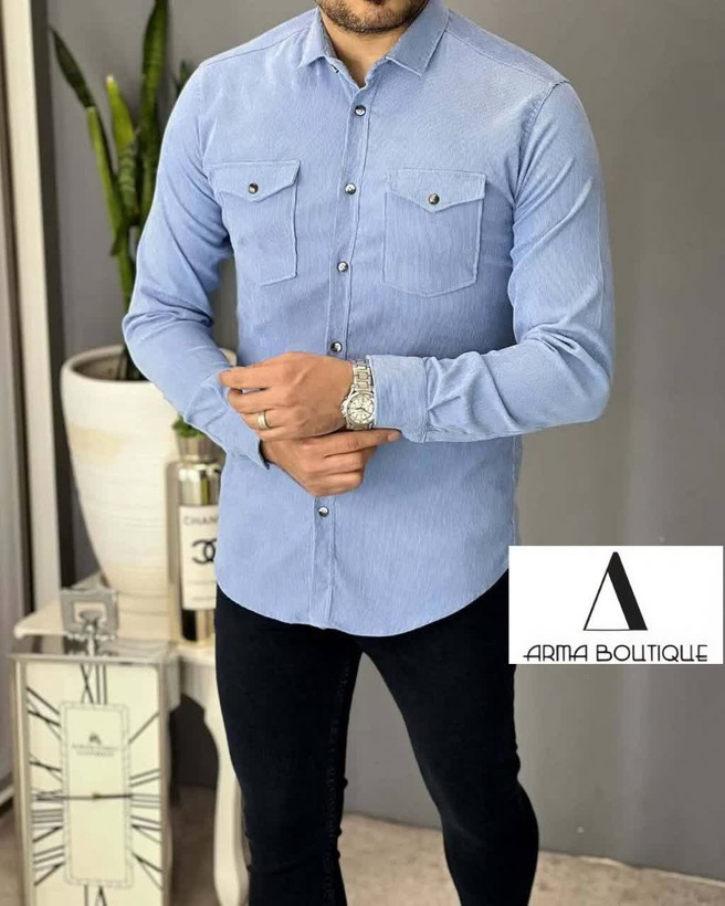 این پیراهن با بافت کبریتی لطیف و ضخامت استاندارد، “گرمای قابلقبول بدون ایجاد سنگینی” را ارائه میدهد؛ یعنی نه آنقدر ضخیم است که برای استفاده داخل محیطها آزاردهنده باشد و نه آنقدر نازک که بخواهد در روزهای سرد شما را تنها بگذارد. از طرفی دو جیب کاربردی روی سینه، علاوه بر زیبایی، کارایی این مدل را بالاتر میبرد و ظاهری اسپرت–کژوال به آن میدهد. رنگ آبی روشن نیز باعث شده این پیراهن از مدلهای رایج فاصله بگیرد و روح تازهای به استایل اضافه کند.