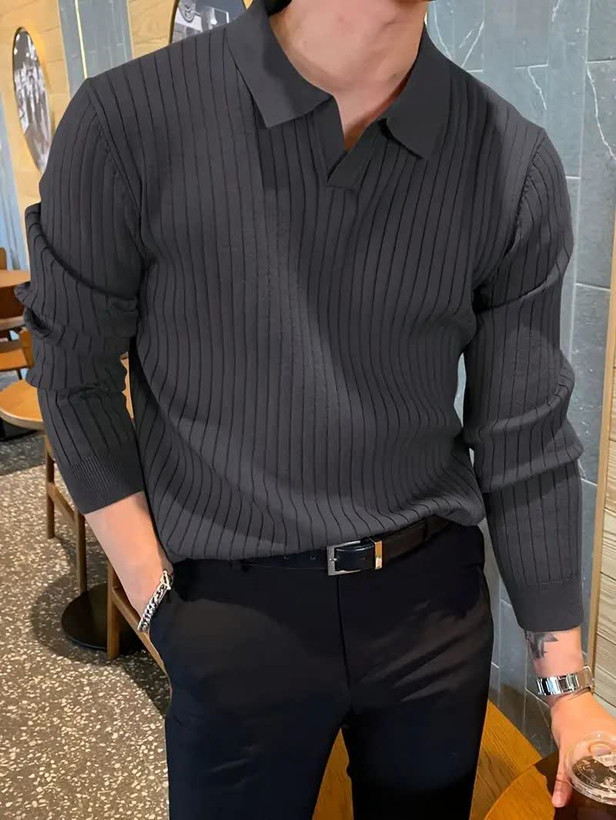 بلوز نیم یقه مراکشی مردانه اورجینال استایل اولد مانی Old Money رنگ ذغالی در سایزبندی کامل از مدیوم تا سه ایکس لارج (M تا 3XL) عرضه شده است.