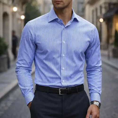 پیراهن راه راه ریز مردانه آستین بلند تمام نخ مدل اندامی
